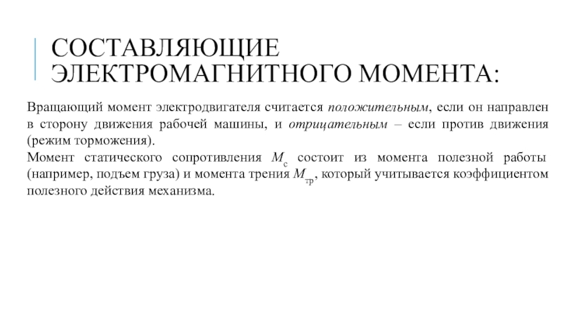 Слайд 8Составляющие электромагнитного момента: