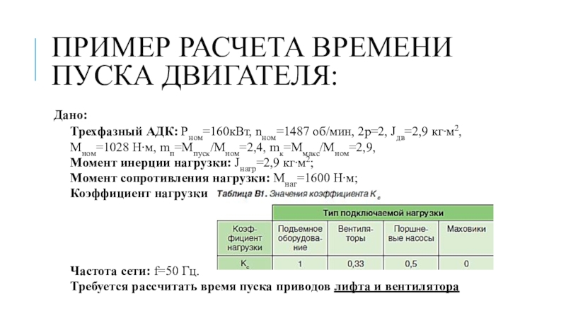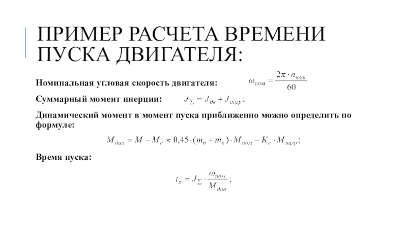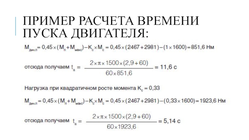 Слайд 14Пример расчета времени пуска двигателя: