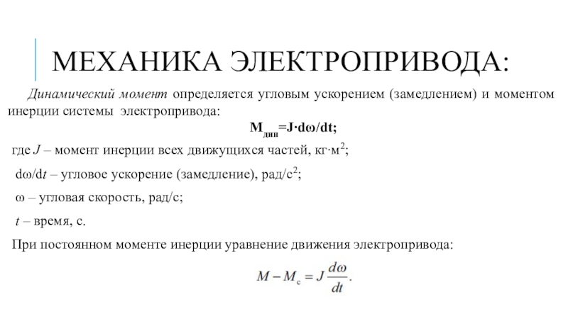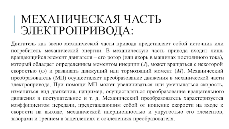 Слайд 4Механика электропривода:
