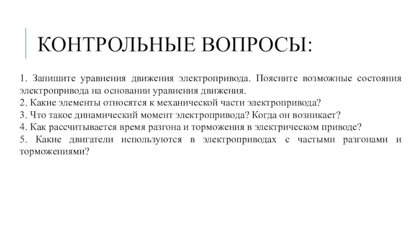 1. Запишите уравнения движения электропривода. Поясните возможные состояния электропривода на