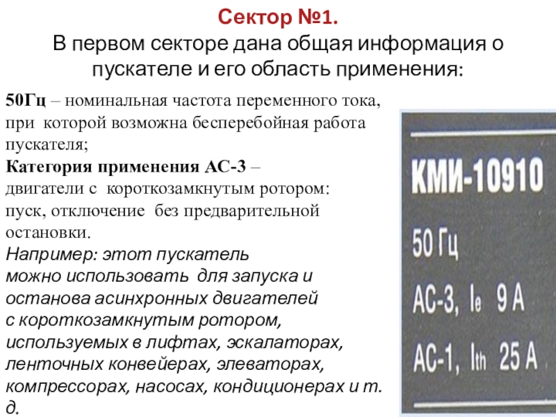 Дома: записать в конспект и разобрать «категории применения пускателя или контактора».
