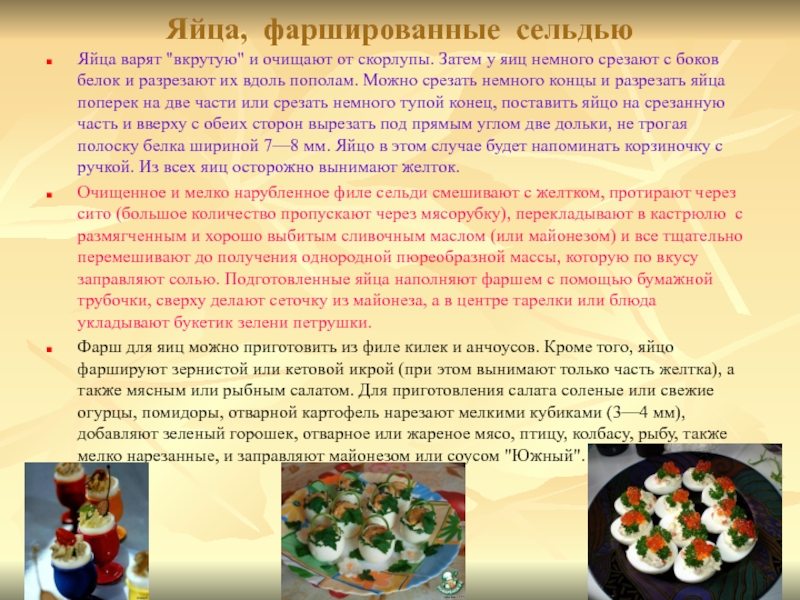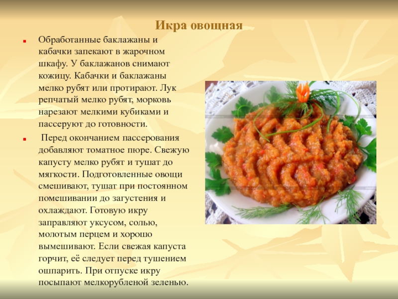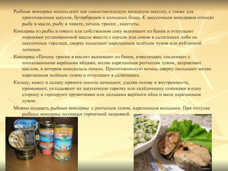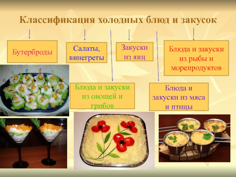 приема пищи. В этом случае их называют закусками, они дополняют состав основных блюд, украшают стол, утоляют голод, возбуждают аппетит и дополняют пищевую ценность рационов.
