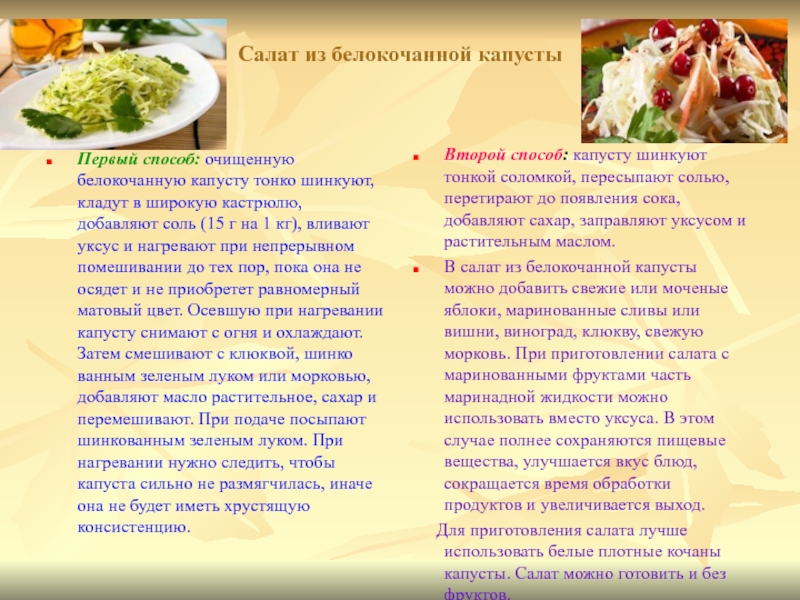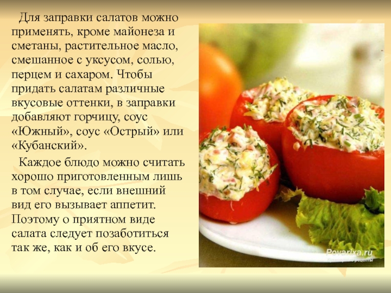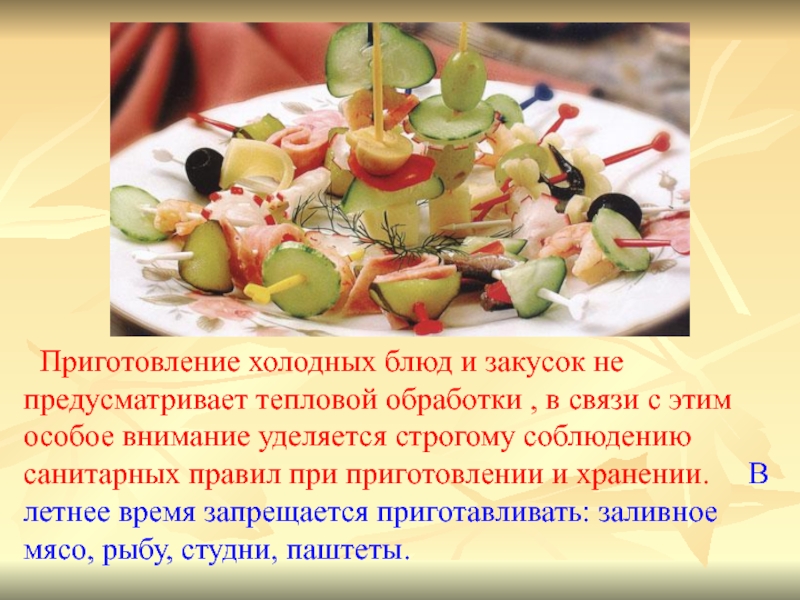 Слайд 6Приготовление холодных блюд и закусок не предусматривает тепловой обработки , в