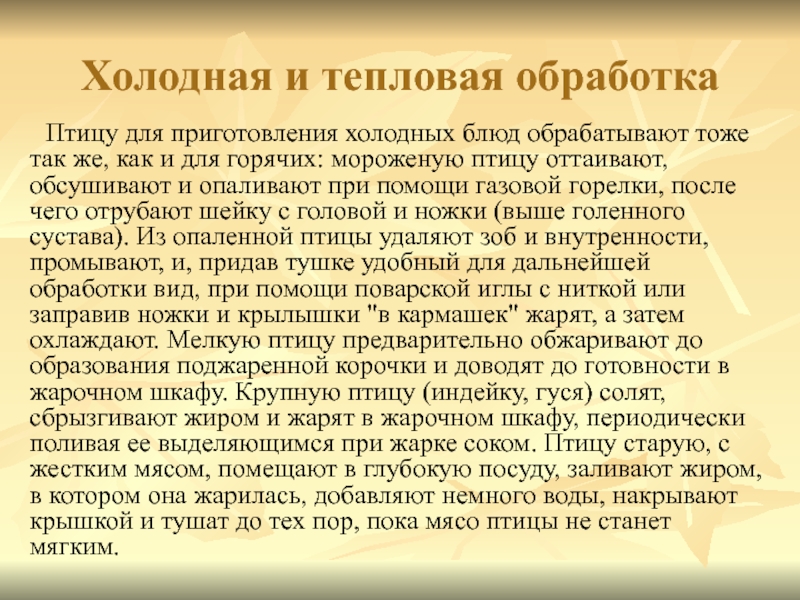 Птицу для приготовления холодных блюд обрабатывают тоже