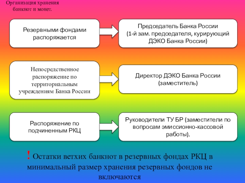 ! Остатки ветхих банкнот в резервных фондах РКЦ в минимальный размер хранения резервных фондов не включаются