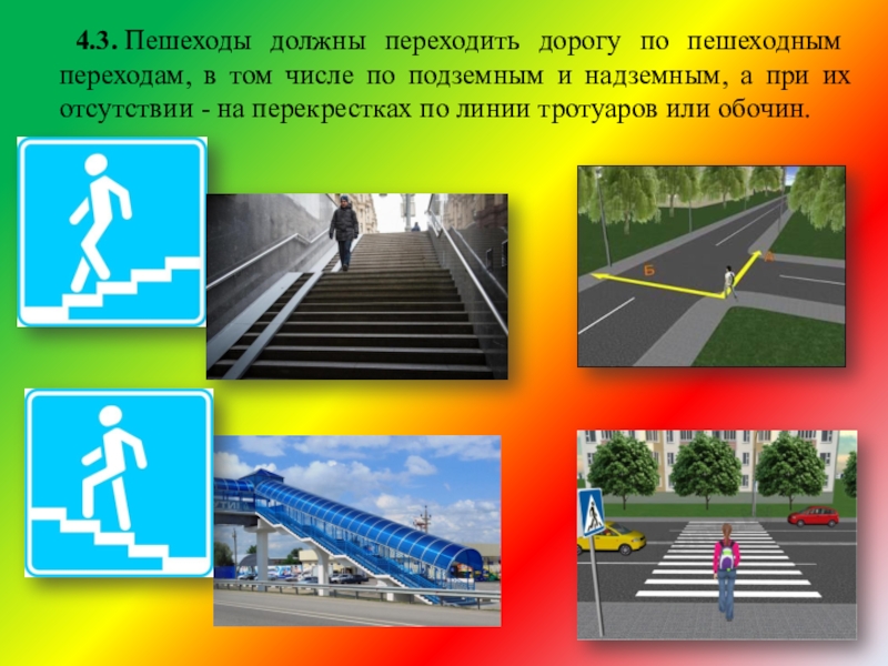 Слайд 32 4.3. Пешеходы должны переходить дорогу по пешеходным переходам, в том