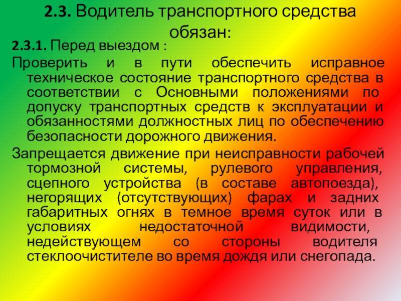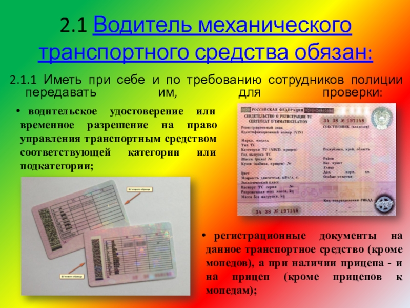 Слайд 82.1 Водитель механического транспортного средства обязан: