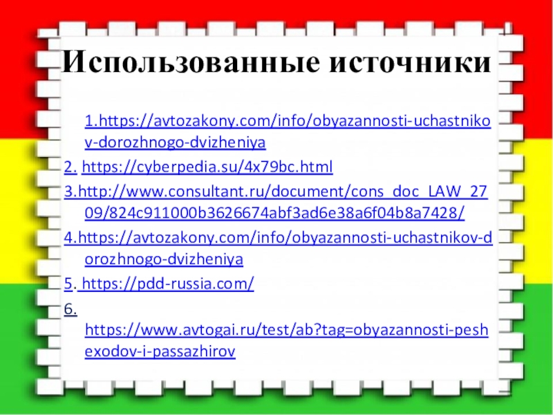 1.https://avtozakony.com/info/obyazannosti-uchastnikov-dorozhnogo-dvizheniya