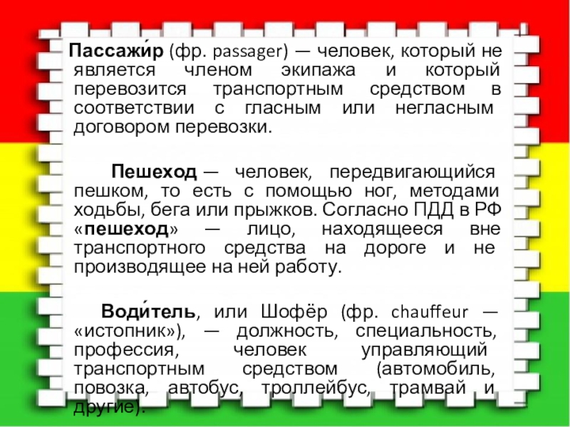 Слайд 4 Пассажи́р (фр. passager) — человек, который не является членом экипажа