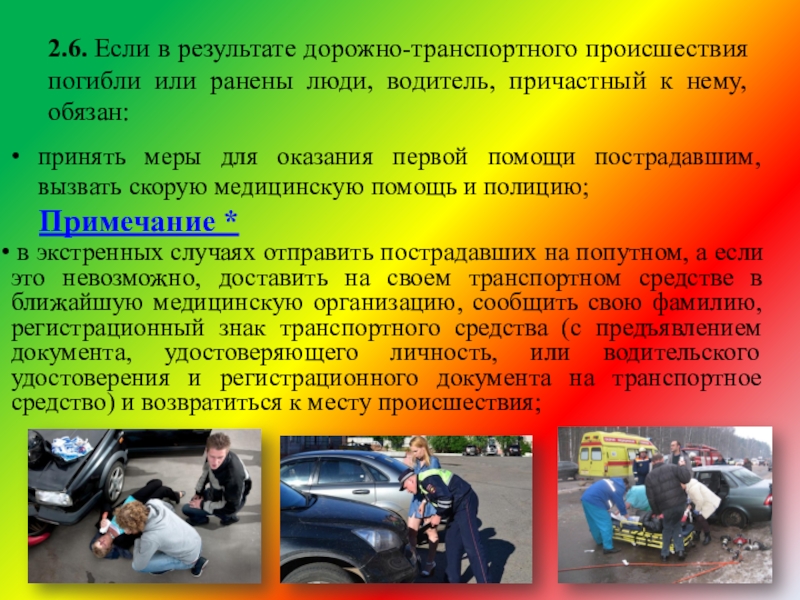Слайд 232.6. Если в результате дорожно-транспортного происшествия погибли или ранены люди, водитель, причастный