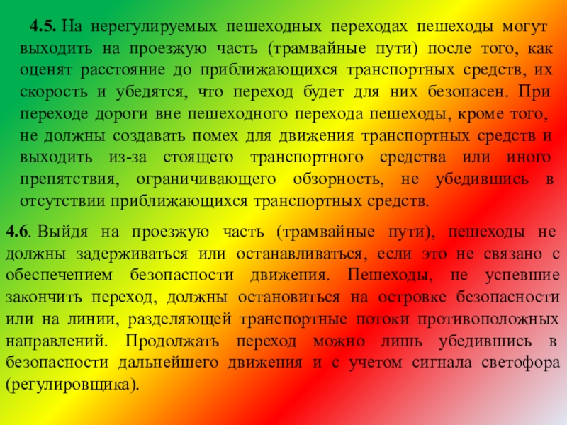 Слайд 34 4.5. На нерегулируемых пешеходных переходах пешеходы могут выходить на проезжую