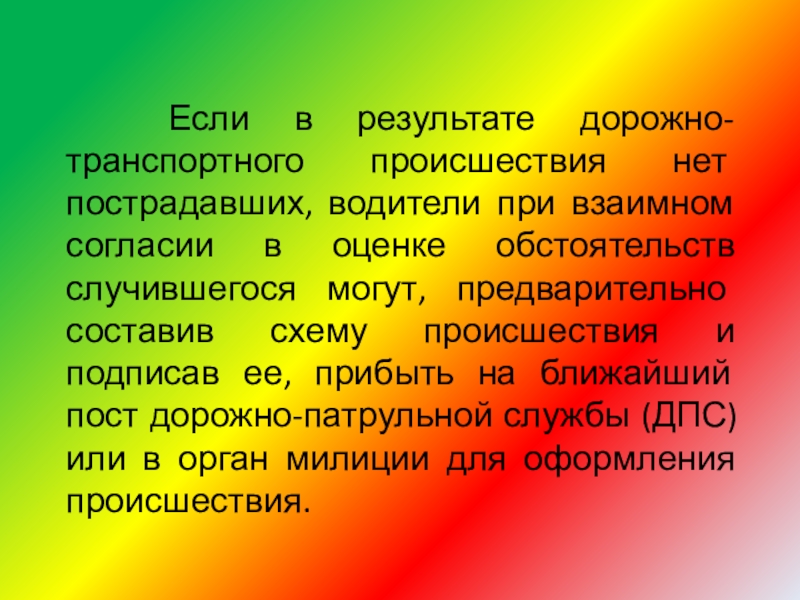 Слайд 24 Если в результате дорожно-транспортного происшествия нет пострадавших, водители при