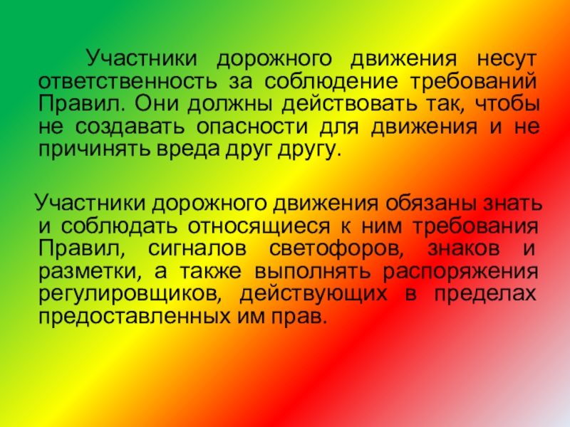 Слайд 5 Участники дорожного движения несут ответственность за соблюдение требований Правил.