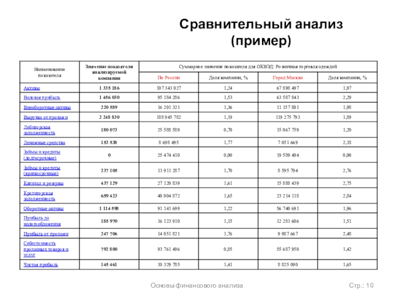 Сравнительный (пространственный) анализ - сравнение показателей деятельности анализируемой организации с показателями других организаций или средними по отрасли. Очевидно, что для сравнительного анализа подходят коэффициенты, но не абсолютные показатели. Такой анализ называется также отраслевым.