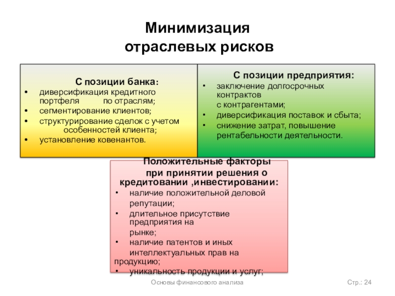 Отраслевой риск – это вероятность потерь вследствие неисполнения должником своих обязательств в результате изменения экономического состояния отрасли, либо агрессивной политики конкурентов.