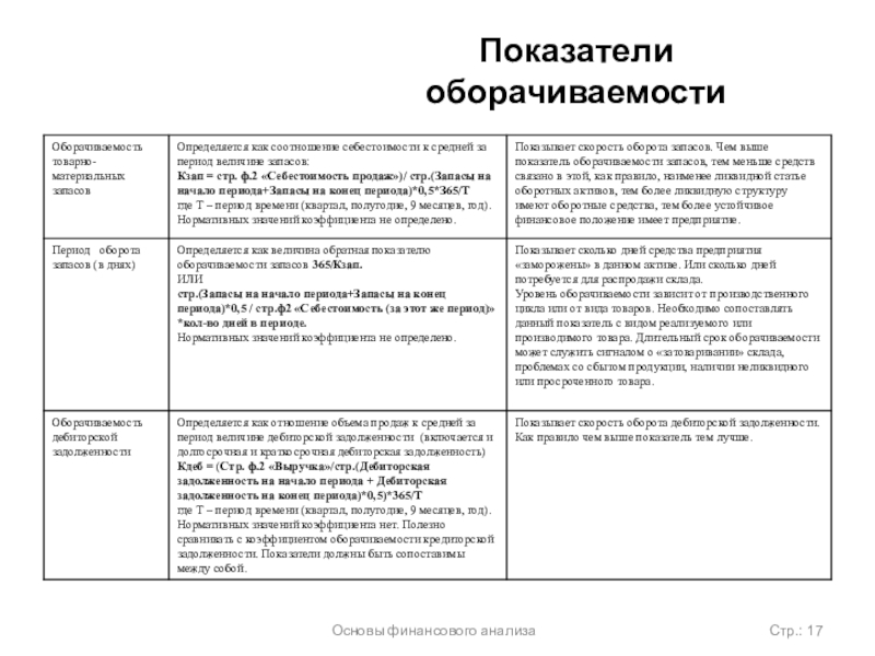 - резкий рост или падение одного из показателей должен быть пояснен, вероятно произошли значимые изменения в организации бизнеса (либо может быть отмечена сезонность).