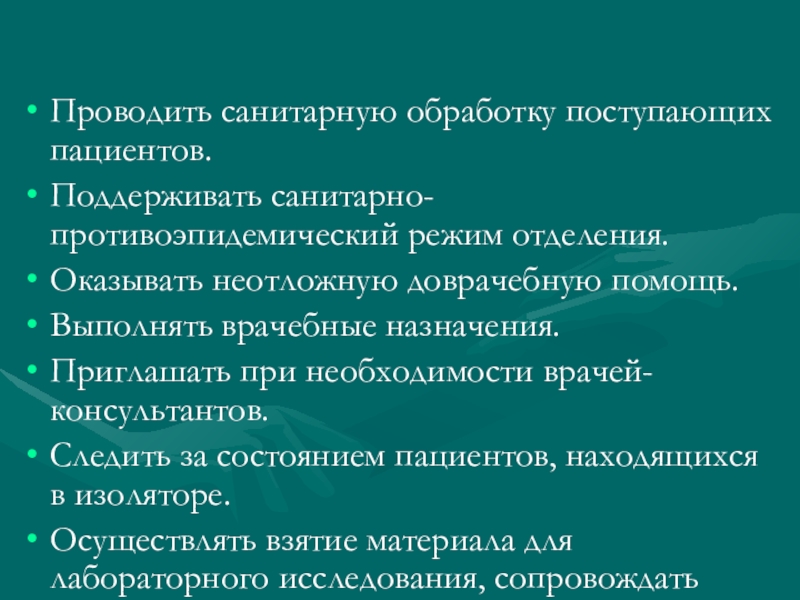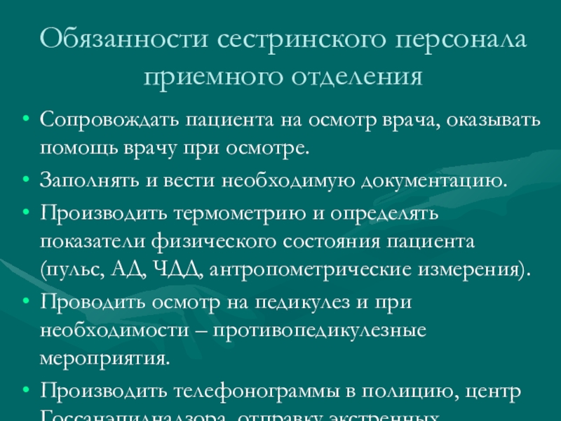 Слайд 15Обязанности сестринского персонала приемного отделения
