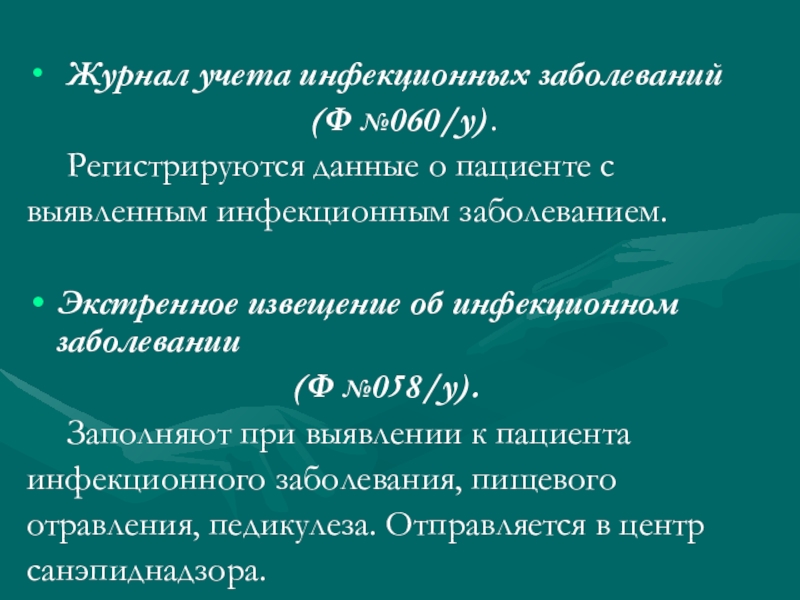 в центр Госсанэпиднадзора в случае выявленного при поступлении инфекционного