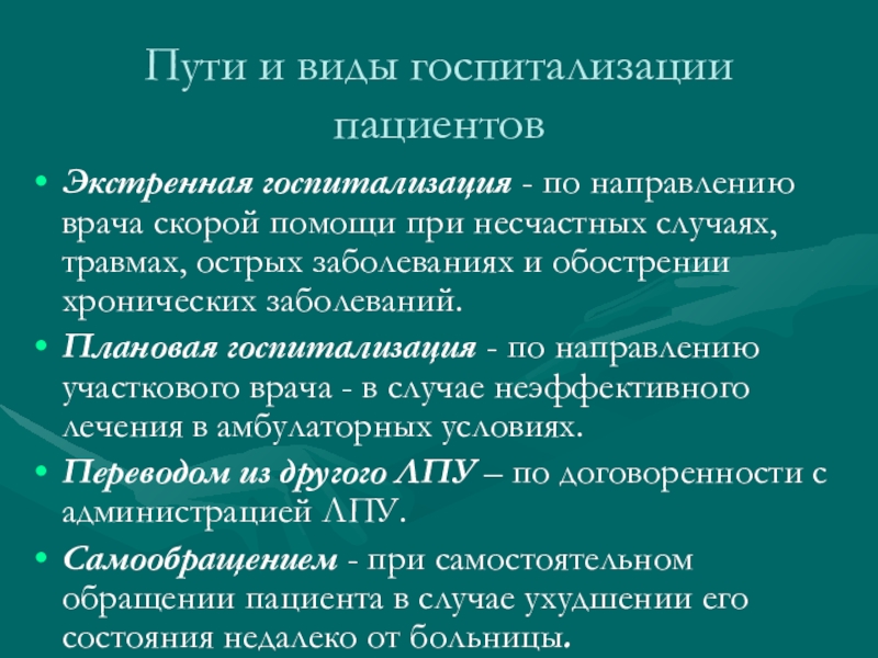 Плановая госпитализация - по направлению участкового врача - в случае неэффективного лечения в амбулаторных условиях.