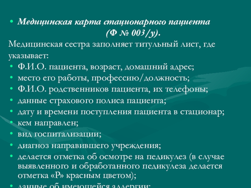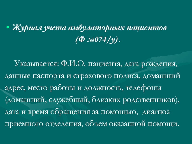 Ф.И.О. пациента, дату рождения, данные паспорта