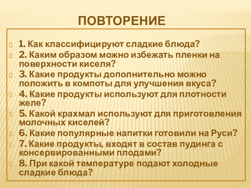 1. Как классифицируют сладкие блюда?
