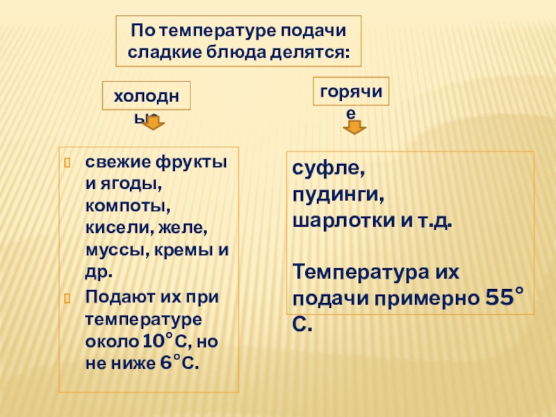 8. При какой температуре подают холодные сладкие блюда?