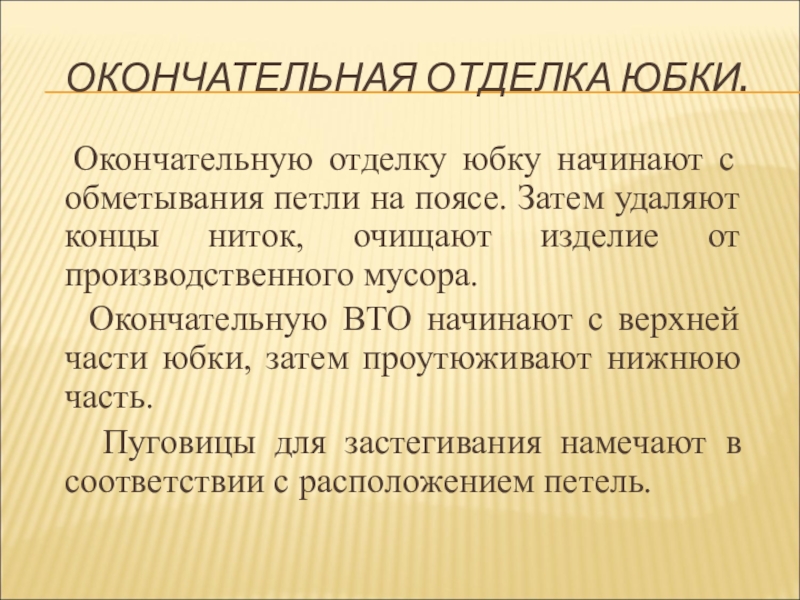Слайд 9ОКОНЧАТЕЛЬНАЯ ОТДЕЛКА ЮБКИ.