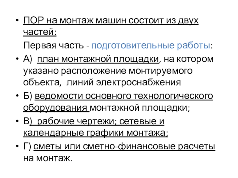 Слайд 12ПОР на монтаж машин состоит из двух частей: