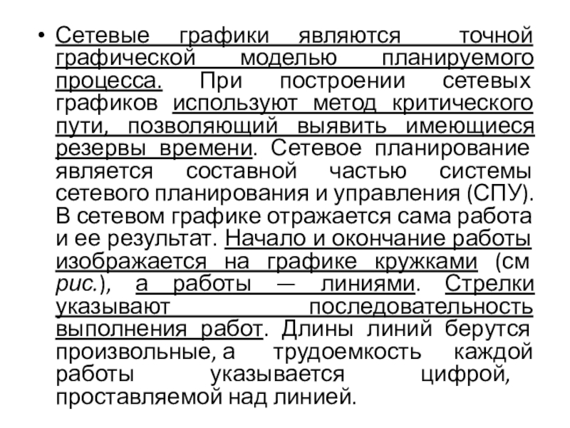 Слайд 21Сетевые графики являются точной графической моделью планируемого процесса. При построении сетевых