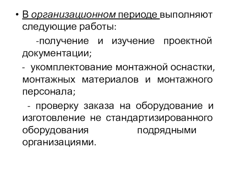 - укомплектование монтажной оснастки, монтажных материалов и монтажного персонала;
