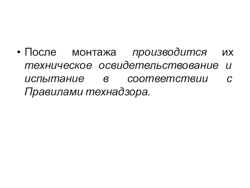 Слайд 15После монтажа производится их техническое освидетельствование и испытание в соответствии с
