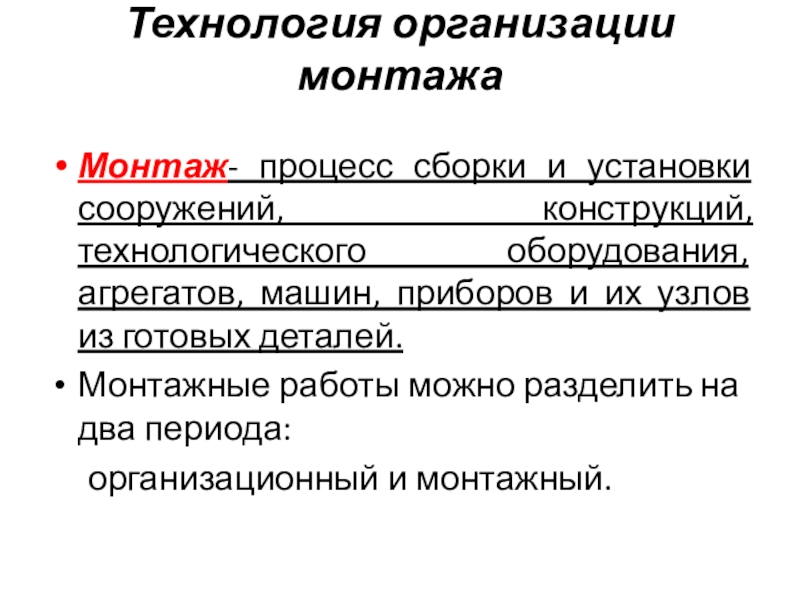 Монтаж- процесс сборки и установки сооружений, конструкций, технологического оборудования,