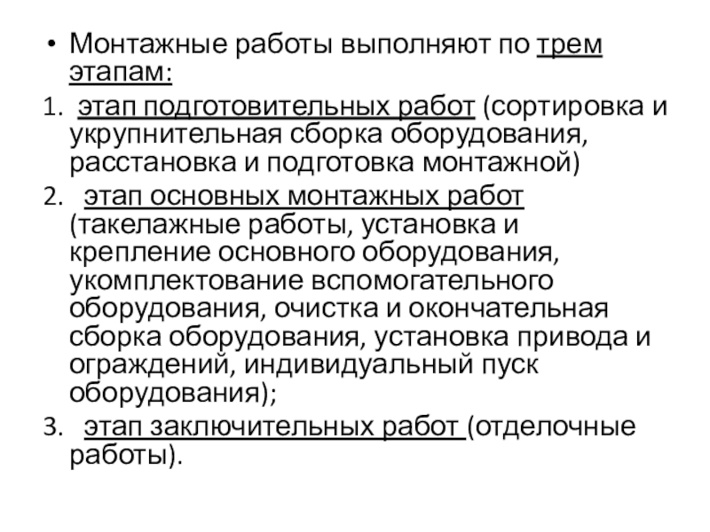 Слайд 5Монтажные работы выполняют по трем этапам: