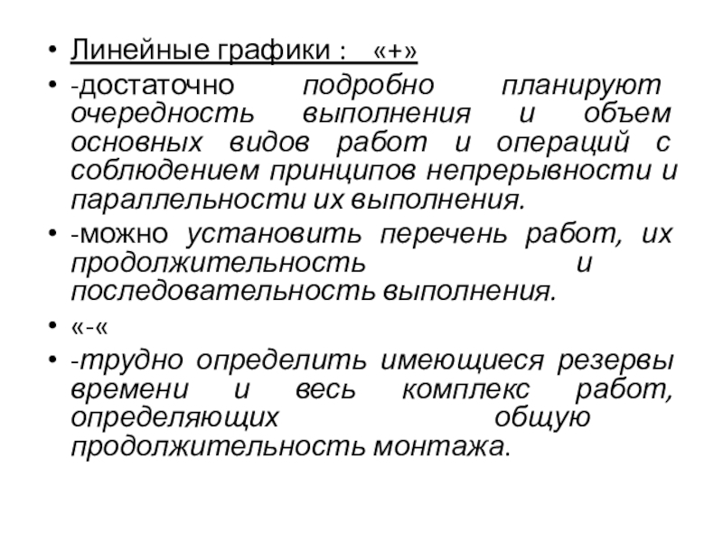 -трудно определить имеющиеся резервы времени и весь комплекс работ, определяющих общую продолжительность монтажа.
