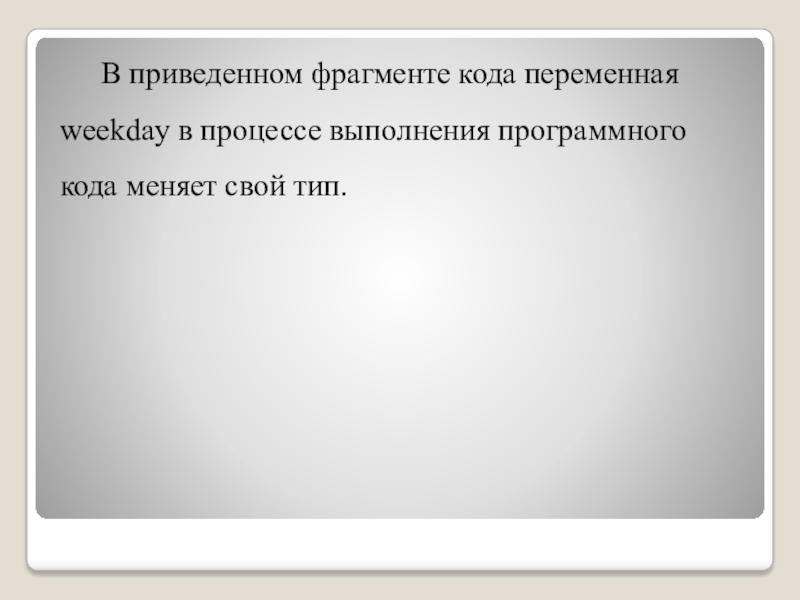Слайд 21В приведенном фрагменте кода переменная weekday в процессе выполнения программного кода