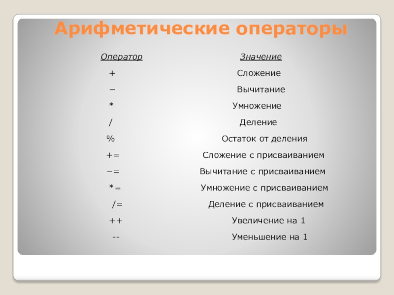 Слайд 24Арифметические операторы