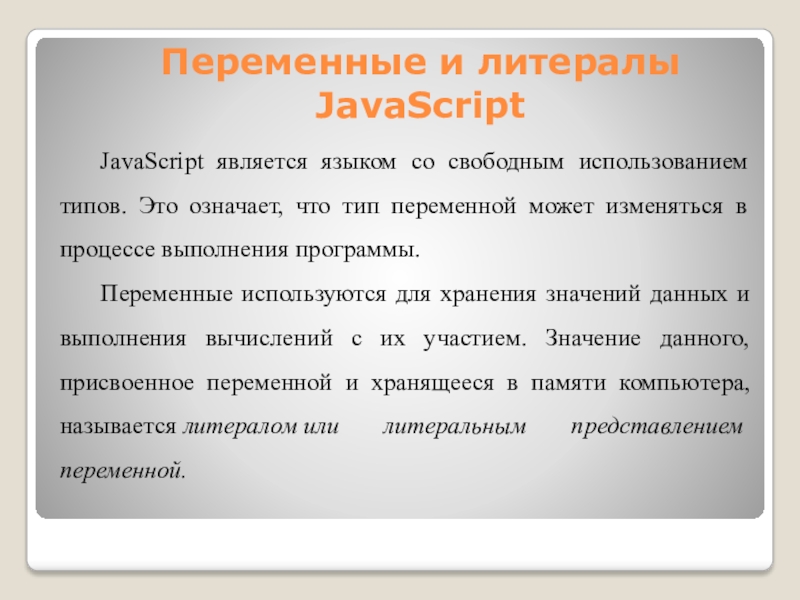 Слайд 8Переменные и литералы JavaScript
