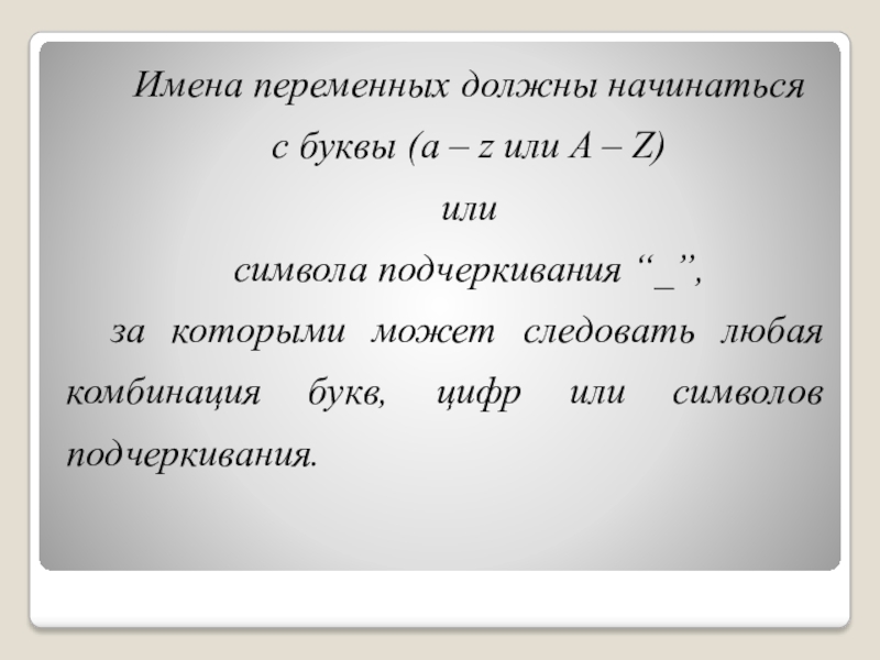 Слайд 10Имена переменных должны начинаться