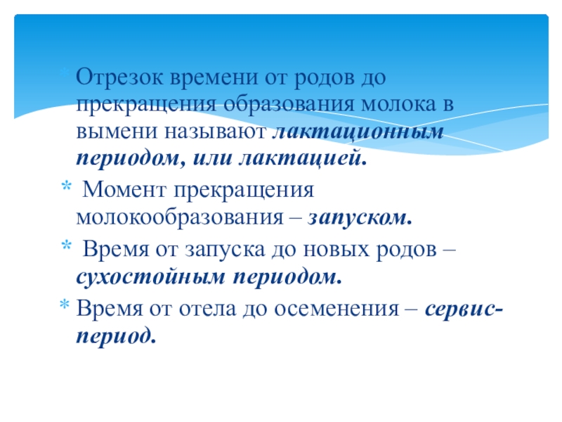 Слайд 5Отрезок времени от родов до прекращения образования молока в вымени называют