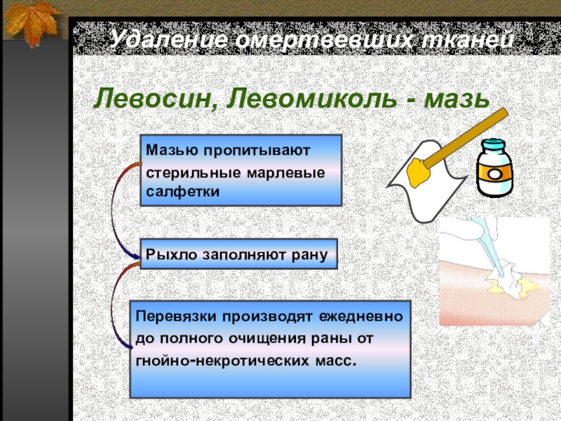 Размягченные и отслоившиеся некротические массы удаляют с помощью пинцета, шпателя, тампона или промыванием перед наложением каждой следующей повязки