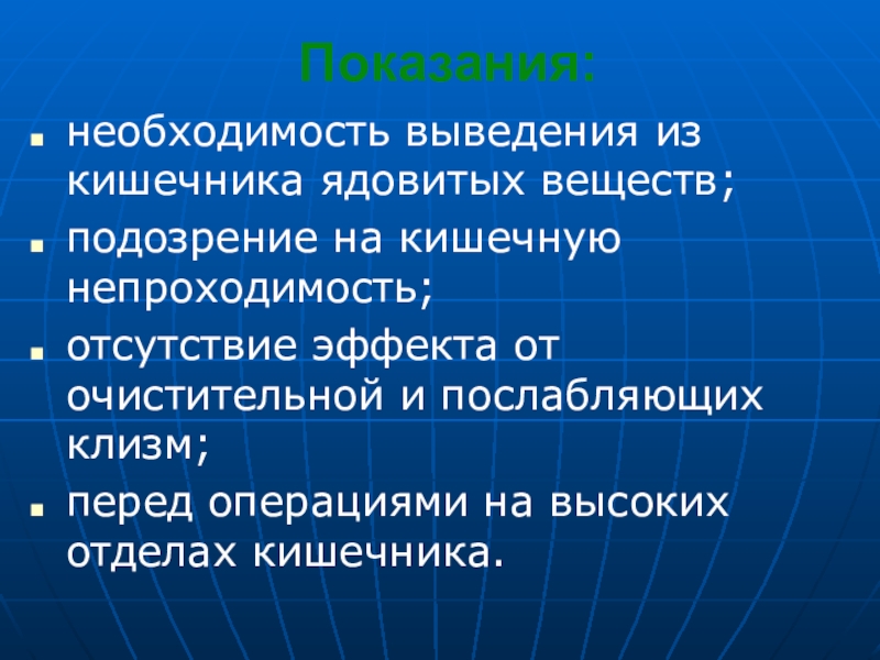 необходимость выведения из кишечника ядовитых веществ;