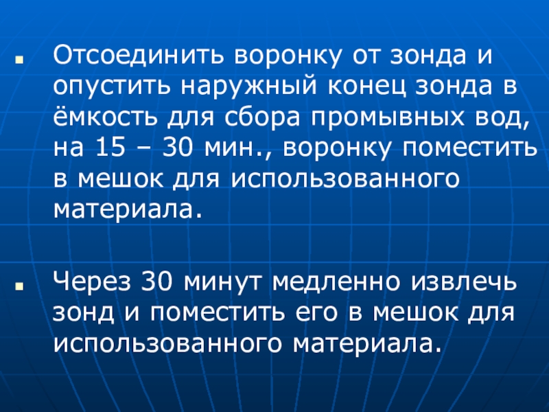 Через 30 минут медленно извлечь зонд и поместить его в мешок для использованного материала.