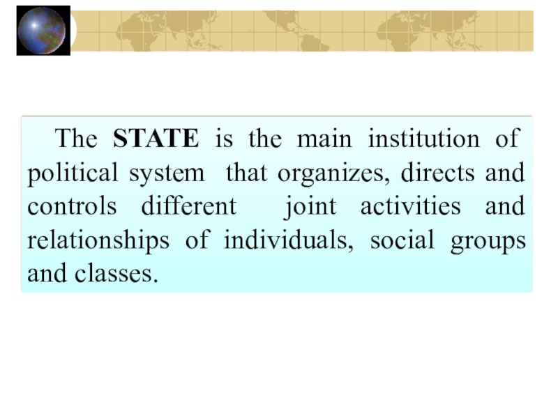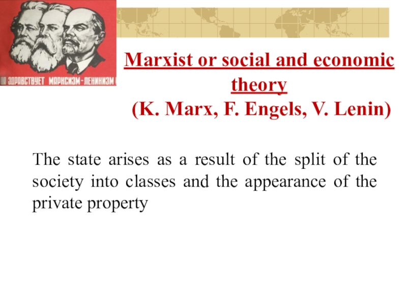 The state arises as a result of the split of the society into classes and the appearance of the private property