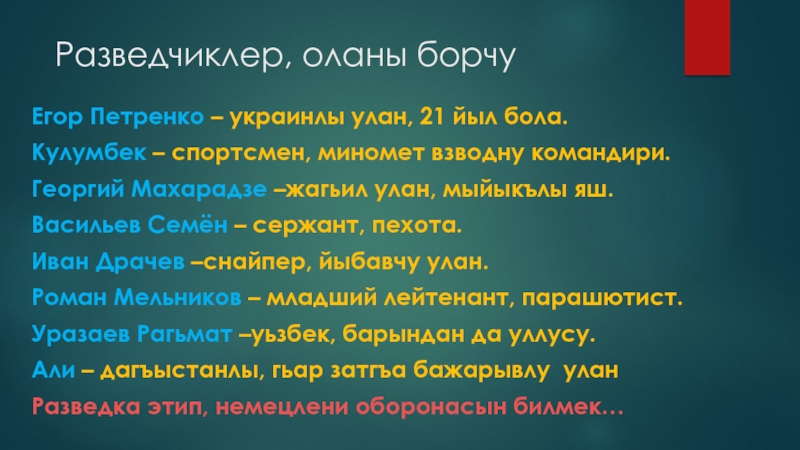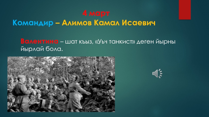 Валентина – шат къыз, «Уьч танкист» деген йырны йырлай бола.