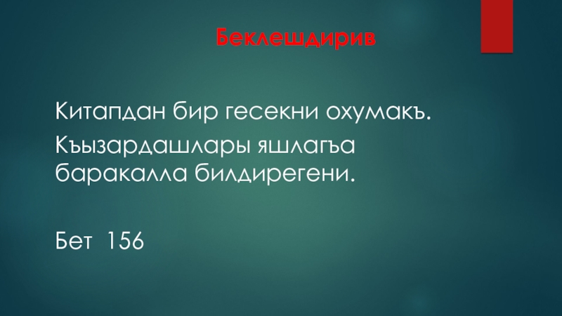 Китапдан бир гесекни охумакъ.