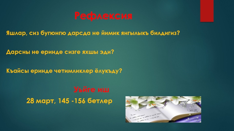 Яшлар, сиз бугюнгю дарсда не йимик янгылыкъ билдигиз?