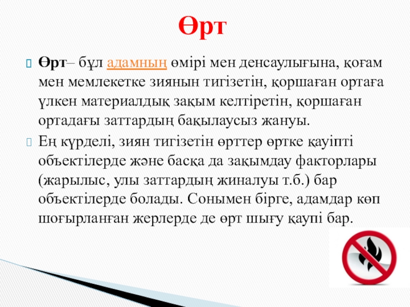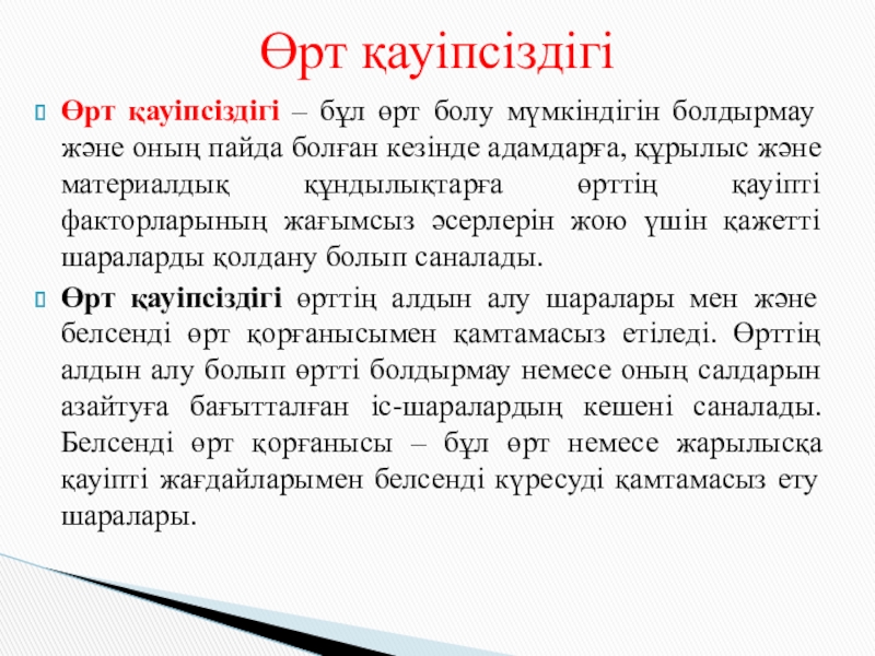 ТАҚЫРЫБЫ: Өндірістегі өрт қауіпсізідігі