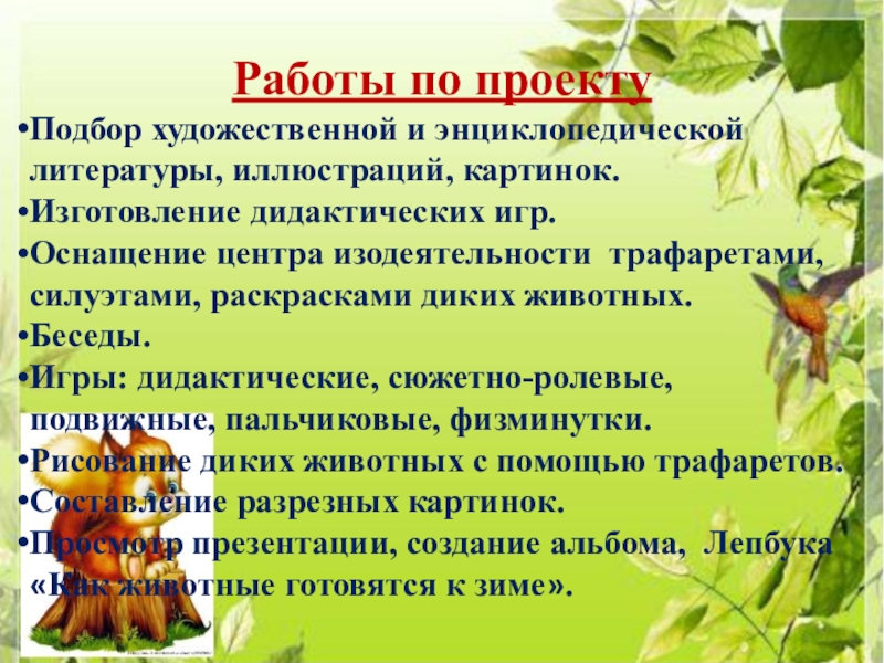 Просмотр презентации, создание альбома, Лепбука «Как животные готовятся к зиме».