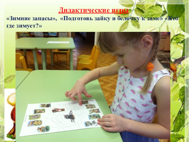 «Зимние запасы», «Подготовь зайку и белочку к зиме» «Кто где