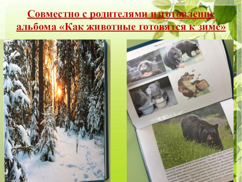Слайд 26Совместно с родителями изготовление альбома «Как животные готовятся к зиме»